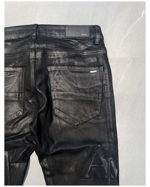 The Amiri Black Distressed Jeans in size 33 offer a stylish and edgy look for men. Made from cotton denim with a dark wash, these skinny fit jeans feature a button closure and a 5-pocket design. The black colour is accented with a logo detail, giving them a unique and branded appeal. Machine washable and with a regular fit, these jeans are perfect for a casual yet fashionable look, especially in the summer season. Designed by AMIRI, these jeans showcase a trendy and distressed style that is sure to make a statement.