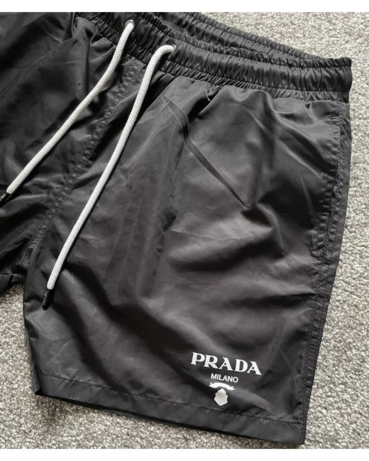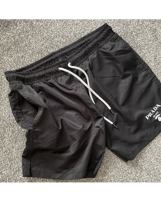 This product is a pair of black PRADA men's shorts in size S, designed for casual occasions during the summer season. The shorts feature a flat front design with the PRADA logo accent, making them a stylish and comfortable choice for men looking for a regular fit sweat style. Made from machine washable fabric, these shorts offer convenience and versatility for everyday wear.