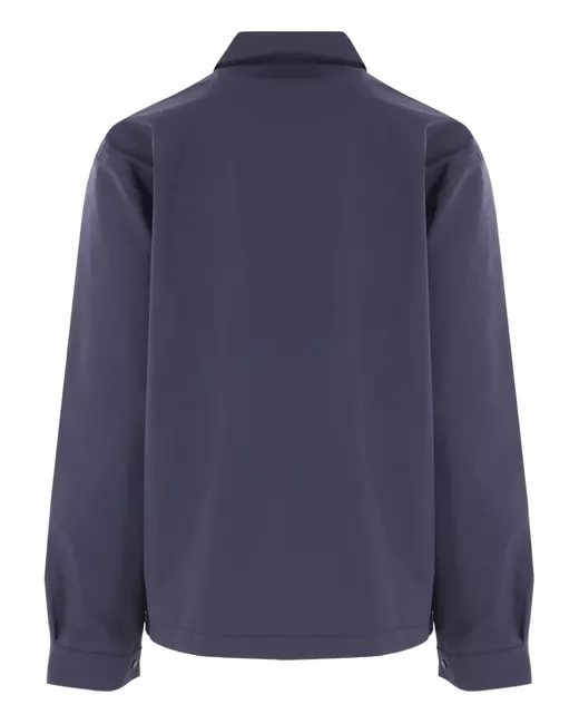 dark blue spread collar double-slider front zip closure multiple pockets buttoned cuffs drawstring hem