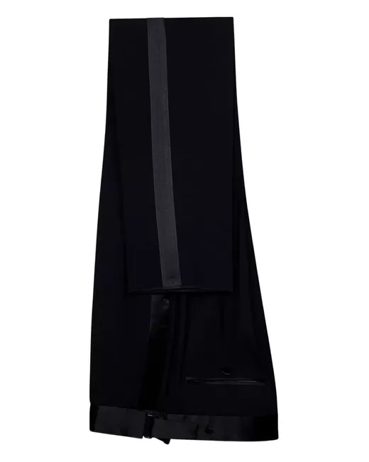 black front button fastening contrasting lapels two front jetted pockets straight leg