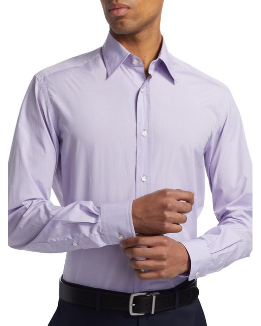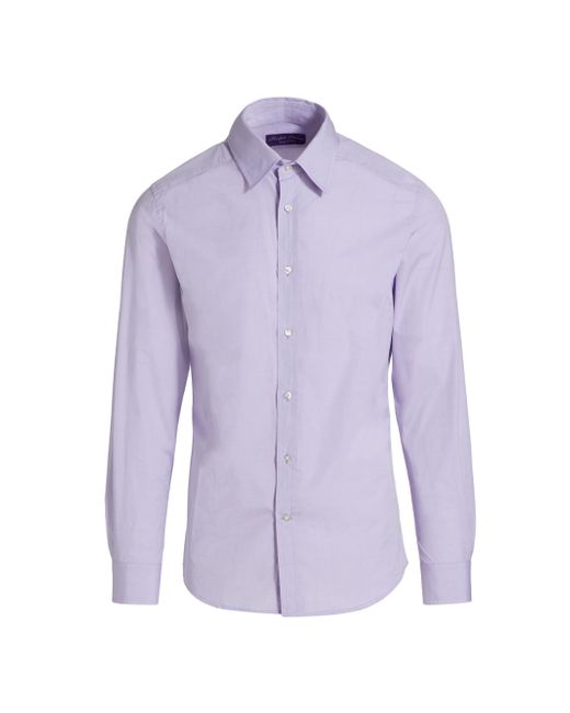 This solid shirt from Ralph Lauren Purple Label features a spread collar and is crafted of soft cotton in Italy. Spread collar Long sleeves, button cuffs Button-front placket 100% cotton Machine wash Made in Italy SIZE & FIT About 31.5" shoulder to hem Model measurements: 6'2" tall, 40" chest Model is wearing a US size 40. Men Luxury Coll - Rl Purple Label > Ralph Lauren Purple Label > Saks Fifth Avenue. Ralph Lauren Purple Label. Color: Lavender. Size: 15.