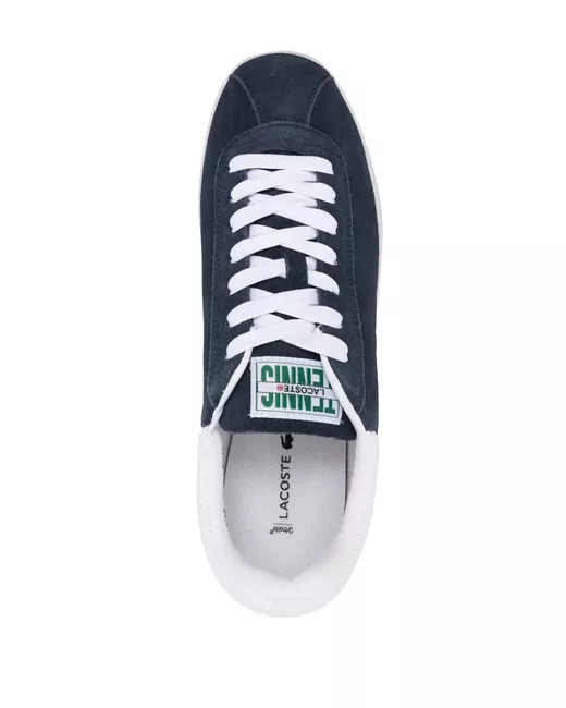 navy blue/white calf suede tonal stitching debossed logo to the side logo patch at the tongue contrasting heel counter round toe front lace-up fastening branded insole flat rubber sole