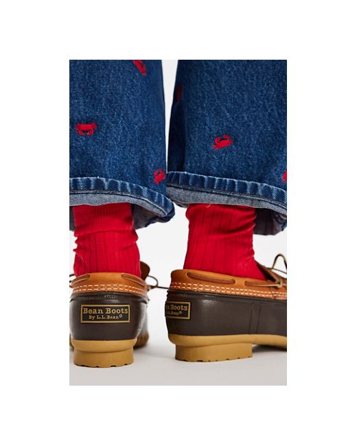An upgraded rainy-day staple by L.L. Bean, these mocc-inspired rubber loafers feature durable leather, rawhide laces, and iconic waterproof chain-tread rubber soles. * Triple-needle stitching * Dual-density cushy insoles * Contoured footbed with steel shank * Long-lasting rubber L.L.Bean Boots, Leather Rubber Moccs at Free People in Tan, Size: US 7