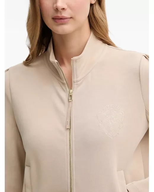 beige long sleeves zip fastening embroidered logo elasticated hem stand-up collar