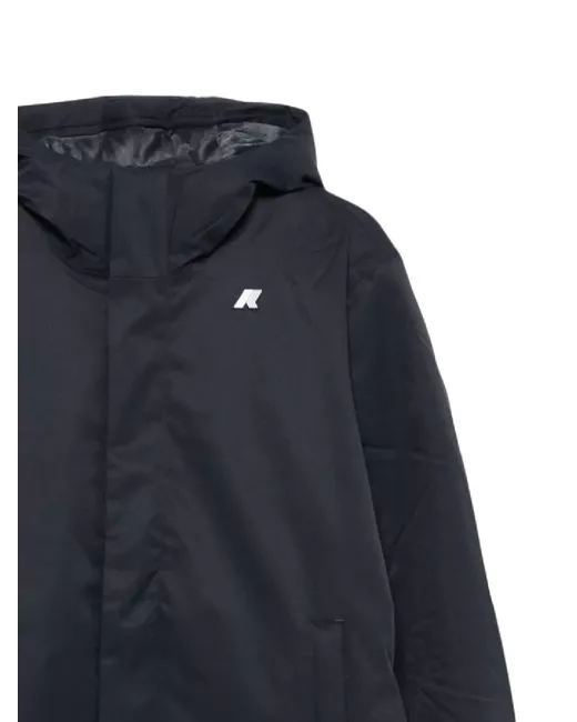 blue padded design hooded neckline front zip fastening long sleeves two welt pockets