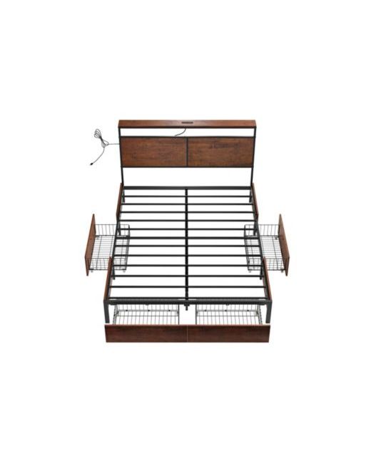 Experience ultimate functionality and style with our Led Bed Frames, available in Queen and Full sizes. Featuring built-in Usb ports and Ac outlets for easy device charging, these frames offer modern convenience. The sturdy metal platform eliminates the need for a box spring, while a sleek laminated finish elevates your bedroom's look. Generous under-bed drawers provide ample storage space, and customizable Led lighting sets the perfect ambiance. Dimensions: Queen: 86"L x 60"W x 38"H Full: 81"L x 54"W x 38"H