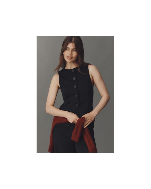 By Maeve 64% Polyamide, 33% Viscose, 3% Elastane Button-front styling No collar Hand wash Imported Button-Front Knitted Vest Top by Maeve in Black, Women's Size: XS, Polyamide/Viscose/Elastane at Anthropologie
