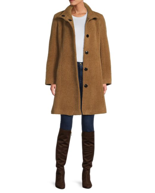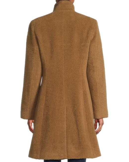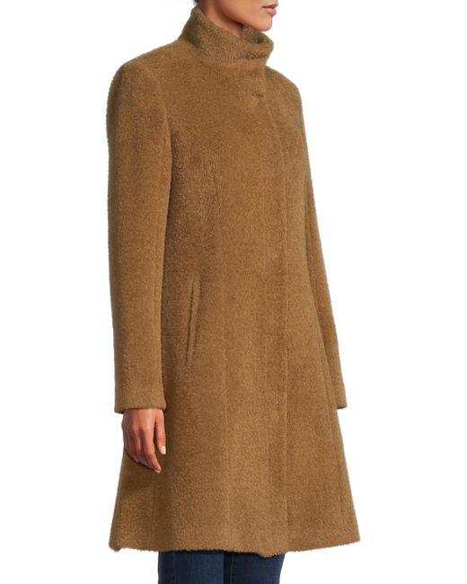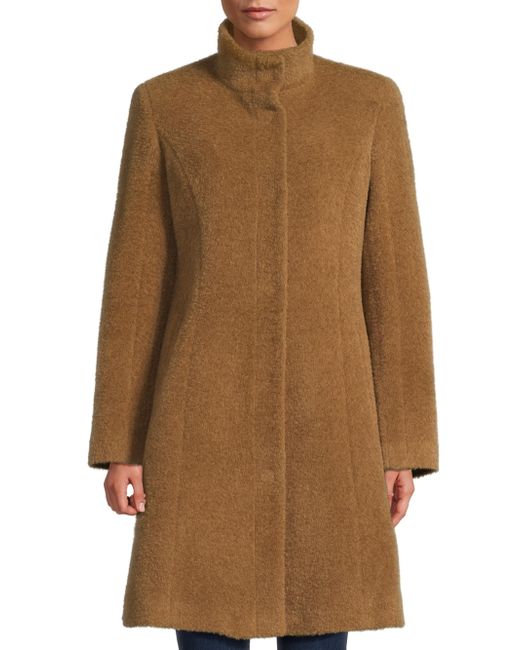 This coat from Sofia Cashmere is crafted of a soft wool blend and designed with a stand collar and princess seams. Stand collar Long sleeves Side slip pockets Front snap closure 55% wool/40% alpaca wool/5% nylon Lining: 100% acetate Dry clean Made in USA SIZE & FIT About 38" from shoulder to hem Model measurements: 5'10" tall Model is wearing a US size 4. Outerwear And Swimwear - Wool > Sofia Cashmere > Saks Fifth Avenue. Sofia Cashmere. Color: Camel. Size: 10.
