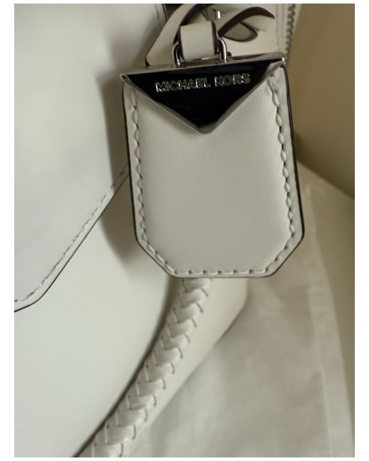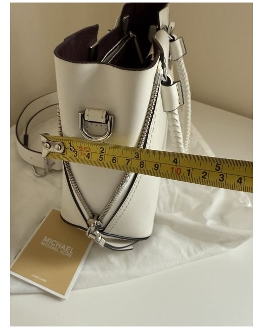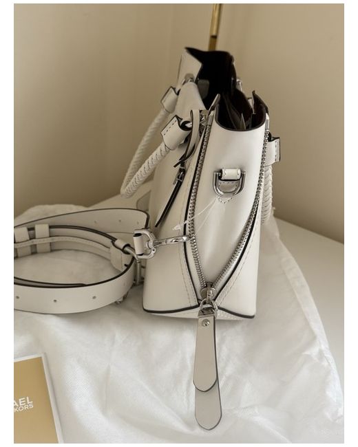 The Michael Kors Leather Tote Bag in Optic White is a stylish and versatile accessory for women. Made from high-quality leather with a classic tote style, this large bag is perfect for casual occasions. The optic white exterior and Silver hardware add a chic touch to the designer piece, making it a timeless addition to any wardrobe. With its spacious interior and durable material, this tote bag is both practical and fashionable, offering both style and functionality. Purple lining Top handle and detachable longer strap Please see photos for measurements