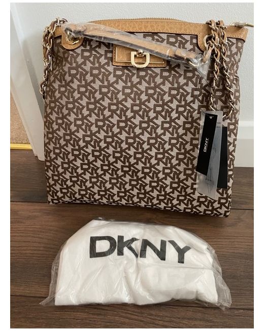 Women's DKNY monogram logo pattern handbag with chain handle and dust cover BNWT
