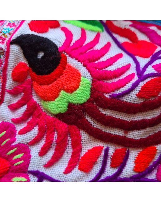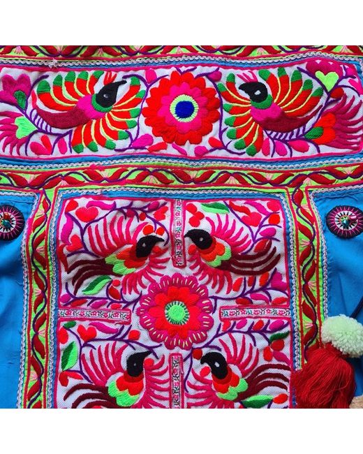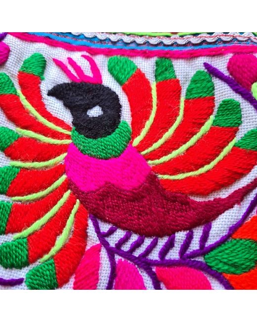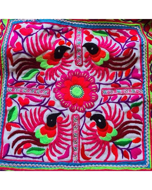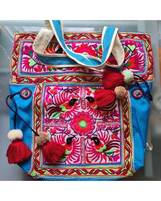 Gorgeous upcycled handmade large shoulder / travel bag - this bag is in vintage style and home to north Thailand tribal people. The bag is in new condition. There is a hand embroidered design on both sides in birds and flowers pattern with cute pompoms on sides, zip opening, lining inside with zip pocket. Made from hilltribe fabric (vintage hand embroidery) decorated with hemp fabric at the back and handle (there is small mark inside the bag - come with the fabric) Size 18x18inch (bigger than laptop) All fabrics are handmade, and has been made for only one bag, there won't be other bags the same as this.