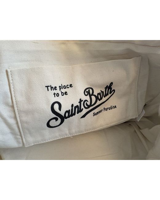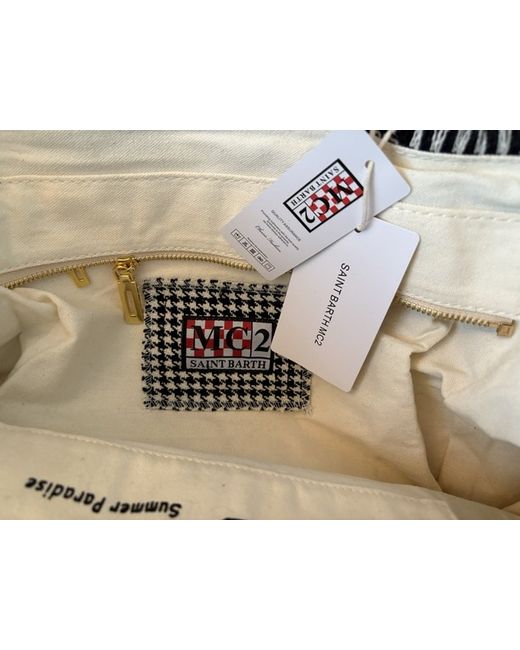 The St. Barth MC2 Large beach bag is a stylish tote bag designed for women with a spacious herringbone exterior and black canvas double handles. The bag features a beige lining and is perfect for carrying beach essentials with its beach-themed design. The herringbone material adds a touch of sophistication to the bag, making it both practical and fashionable for any beach outing.