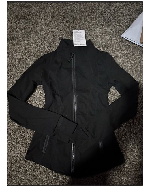 The Lululemon Women's Define Set in size 8 is a sleek and stylish black jacket perfect for the yoga enthusiast. Made from polyamide with insulation material of polyester, this jacket is designed for comfort and functionality during active wear. The slimming feature and zip closure add to its practicality, while the Lululemon brand ensures quality and style. Ideal for gym sessions or leisurely outings, this jacket is a versatile addition to any woman's wardrobe.