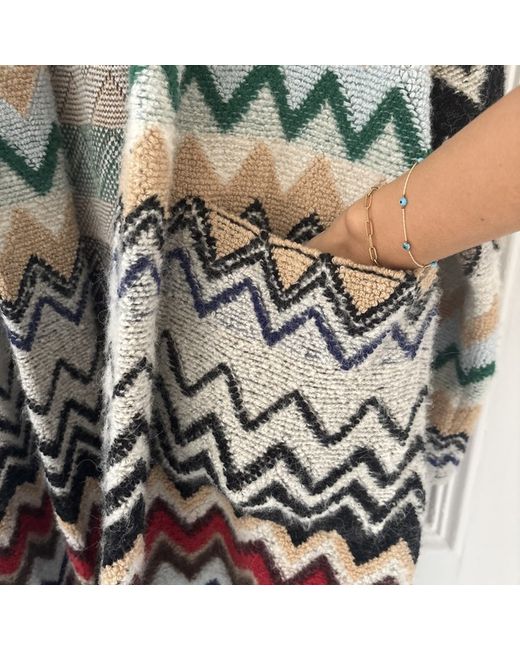 The Missoni coat is a luxurious and stylish addition to any wardrobe. Made from wool with a knit fabric type, this long coat features intricate embroidered accents and a tie closure for a sophisticated touch. Perfect for various occasions from casual to formal, this multicoloured overcoat exudes Italian designer flair and is ideal for the winter season. With its hooded design, tie waist detail, and practical pockets, this Missoni coat is the epitome of chic and practicality. Can be dressed up or down as the statement piece of an outfit.