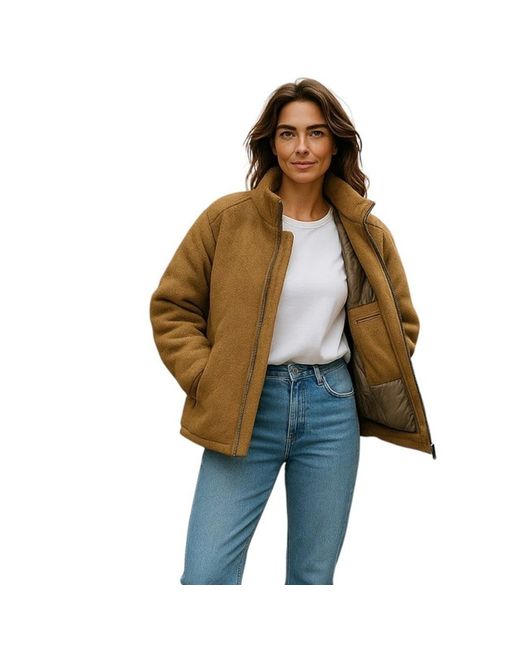 Women's Brown Knitted Puffer S Jacket Soft Down Padded Camel Wool RRP1200