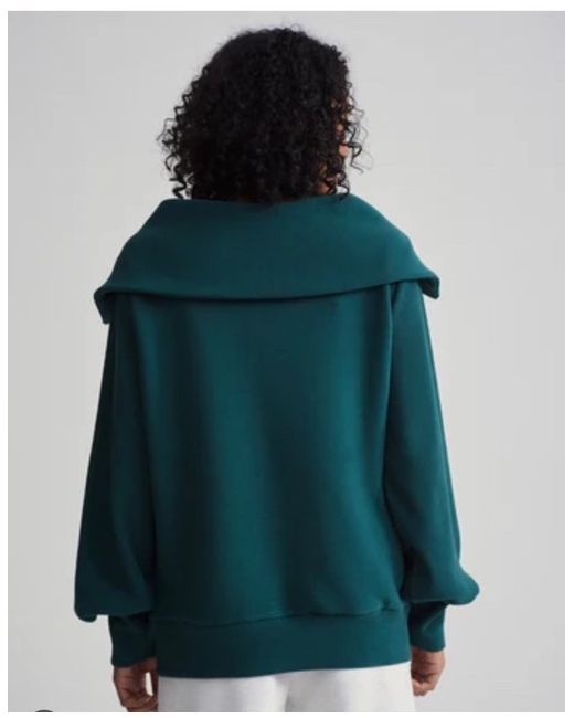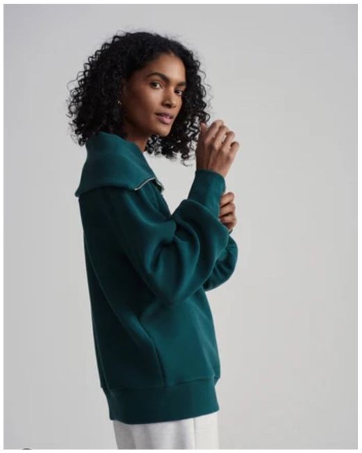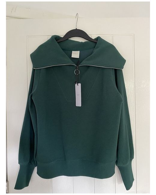 The Varley Vine Half Zip Pullover in size small is a stylish and functional activewear sweatshirt in a beautiful conifer green colour. With long sleeves and a zip closure, this pullover is perfect for staying comfortable and active during workouts or everyday activities. Made by the popular brand Varley, this pullover is machine washable for easy care and is designed for women looking for a blend of fashion and functionality in their wardrobe.