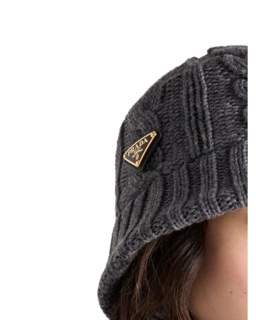The iconic bucket hat is reinterpreted with a soft texture with wintry allure. Made with a cable-knit pattern, the accessory is decorated with the enameled metal triangle logo. Cable knit Enameled metal triangle logo Cotton lining Imported. Lsd Rtw - Prada Rtw > Prada > Saks Fifth Avenue. Prada. Color: Grey. Size: Small.