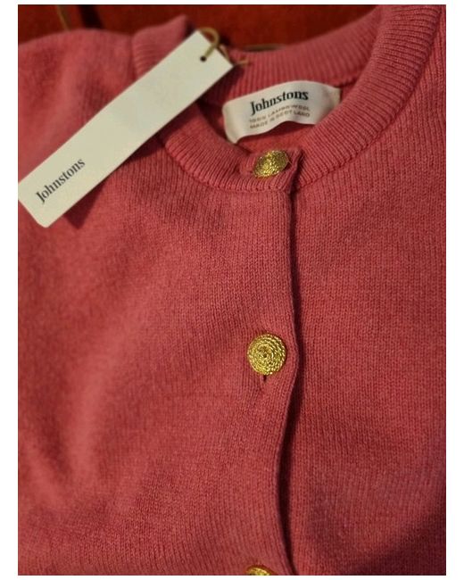 Johnstons of Elgin double lambswool high button cardigan long sleeves. BNWT Raspberry UK 16 - pit to pit 21 inches - 27 inches long. Gold metal buttons. Still has spare button attached. Made in Scotland - The home of knitwear