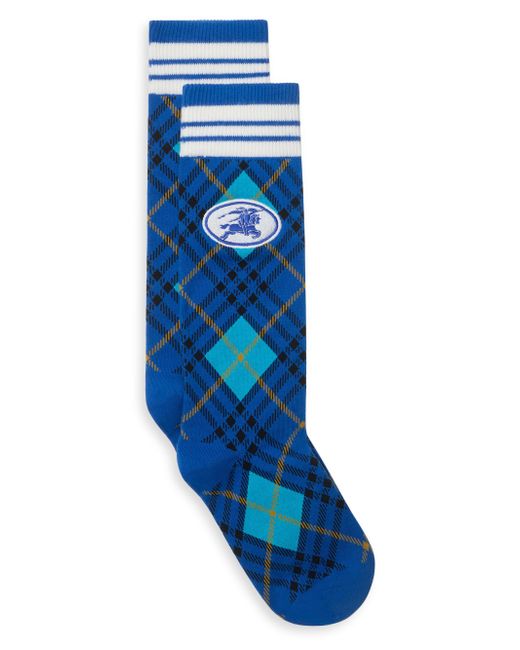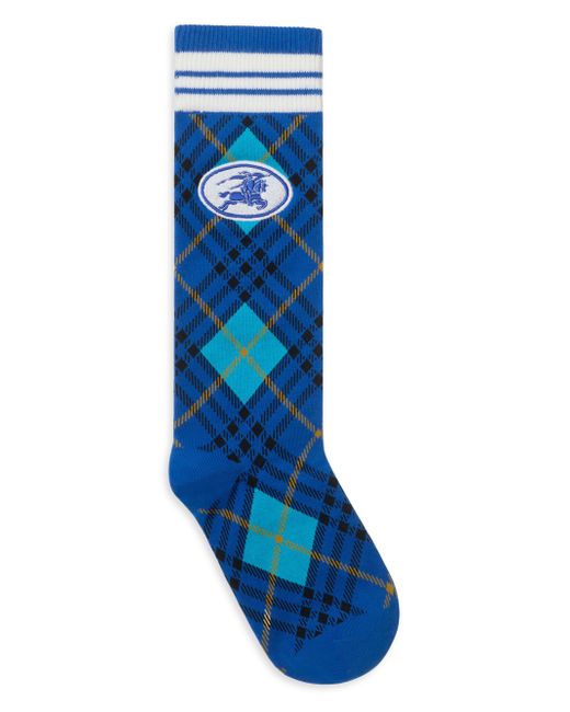 Crafted of a stretch cotton and nylon blend, these socks are embroidered with Burberry's Equestrian Knight Design on an argyle signature Check-inspired ground. 63% cotton/ 34% polyamide/ 3% elastane Machine wash Imported ABOUT THE BRAND Founded in 1856 by 21-year-old Thomas Burberry, the brand set out with a mission to stylishly protect against British weather-and Burberry's iconic trench coat was born. In the 1920s, its renowned check pattern was introduced as the coat's lining. Today, under Creative Director Daniel Lee, the heritage brand continues to evolve and create timelessly classic men's, women's and kids' pieces, along with beauty. Men Accessories - Hosiery > Burberry > Saks Fifth Avenue. Burberry. Color: Hyacinth. Size: Large.