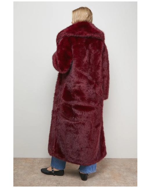 OASIS Maxi Faux Fur Plush Coat. Faux Fur main: 100% Polyester. Faux Fur backing: 100% Polyester. Lining: 100% Polyester. Dry clean only. Model wears size 10.