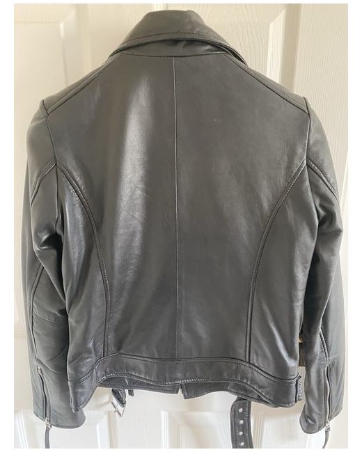 Black leather women's jacket, unworn because of small sizing. Length approx 22", across shoulders approx 15" and bust approx 30"