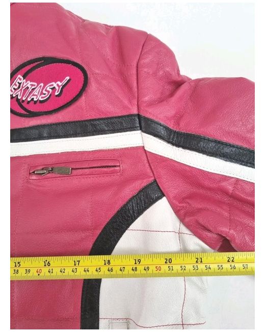 The James and John Extasy Women's Pink Leather Jacket in size Medium is a stylish and versatile addition to any wardrobe. This biker jacket features a short length with long sleeves and a zip closure, making it perfect for any season. The pink colour adds a fun and feminine touch, while the embroidered accents give it a unique flair. Made from high-quality leather, this jacket offers a regular fit and is designed for women who love to make a statement. Perfect for those who want to stand out and stay warm in style.