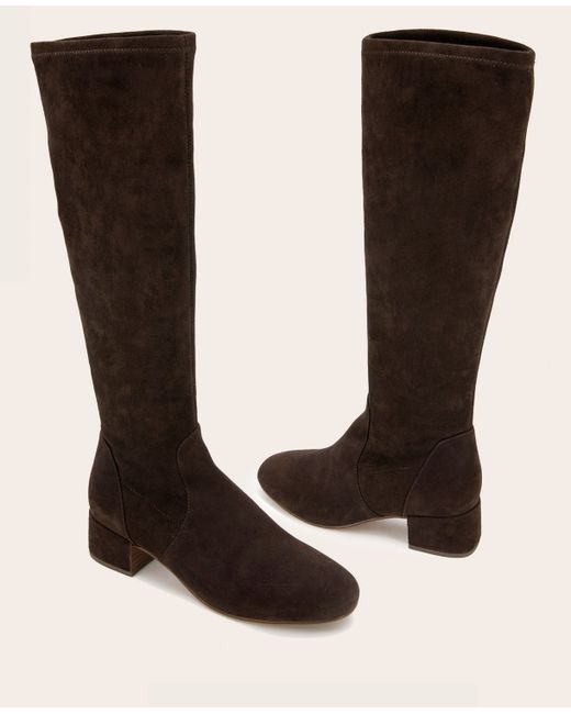 WHAT’S IN IT FOR YOU? Tall stretch boot Roomy almond toe Side zip closure for easy on-and-off Signature Gentle Souls comfort technology Breathable leather lining naturally wicks moisture and controls temperature Cloudlike PORON cushioning and patented arch support from natural materials Traction rubber layered sole 13 in. shaft circumference 15.4 in. boot shaft 2 in. heel 70% textile, 30% leather Imported Style runs large, size down 1/2 size | Gentle Souls - Ella Stretch Boot in CHOCOLATE SUEDE, Size: 5 by Kenneth Cole