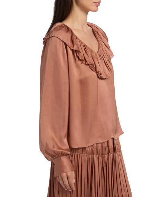 Crafted of luxurious silk, this V-neck Liese blouse from Ulla Johnson is styled with a ruffled trim at the neckline. V-neck Long sleeves, button cuffs Pulls over 100% silk Dry clean Imported SIZE & FIT About 24.25" from shoulder to hem Model measurements: 5'10" tall Model is wearing a US size 4 ABOUT THE BRAND Manhattan-based designer Ulla Johnson credits her archaeologist parents as inspiration for her namesake ready-to-wear label, founded in 1998. Natural fibers, easy fits and meticulous finishes are seen in each collection, which incorporate sweeping silhouettes, and printing and dyeing techniques from around the world. Contemporary Sportswear - Contemporary Lifestyle > Ulla Johnson > Saks Fifth Avenue. Ulla Johnson. Color: Desert Rose. Size: 0.