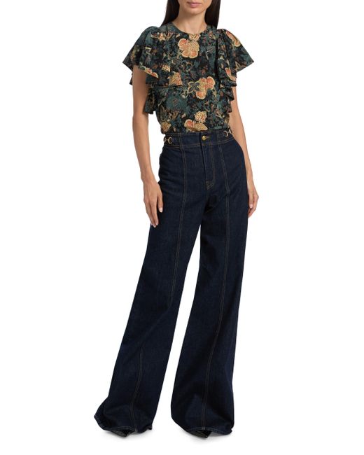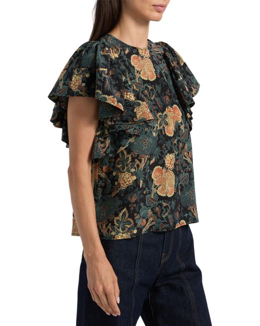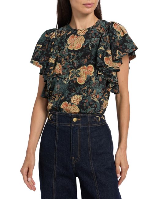Crafted of luxurious silk, this Lena blouse from Ulla Johnson is designed with a round neck, short flutter sleeves, and a bold floral print. Round neck Short flutter sleeves Back zip closure 100% silk Dry clean Imported SIZE & FIT About 23.75" from shoulder to hem Model measurements: 5'10" tall Model is wearing a US size 4 ABOUT THE BRAND Manhattan-based designer Ulla Johnson credits her archaeologist parents as inspiration for her namesake ready-to-wear label, founded in 1998. Natural fibers, easy fits and meticulous finishes are seen in each collection, which incorporate sweeping silhouettes, and printing and dyeing techniques from around the world. Contemporary Sportswear - Contemporary Lifestyle > Ulla Johnson > Saks Fifth Avenue. Ulla Johnson. Color: Nuit. Size: 0.