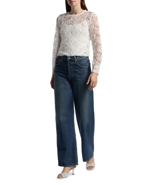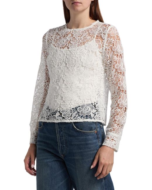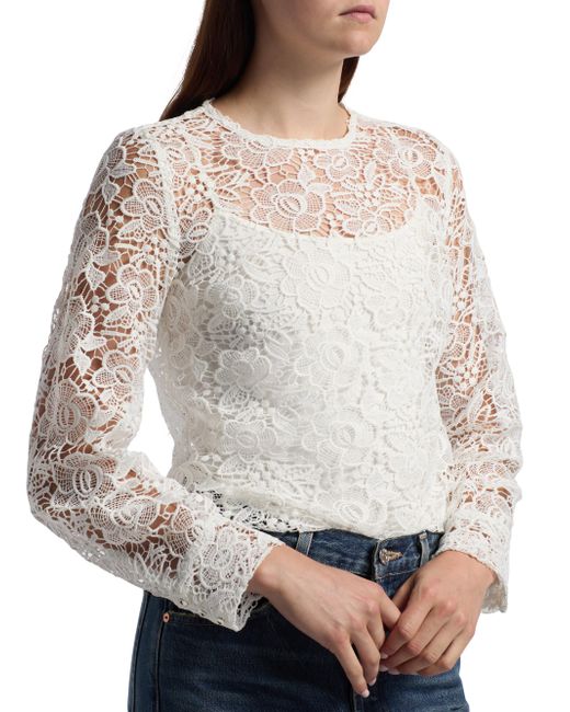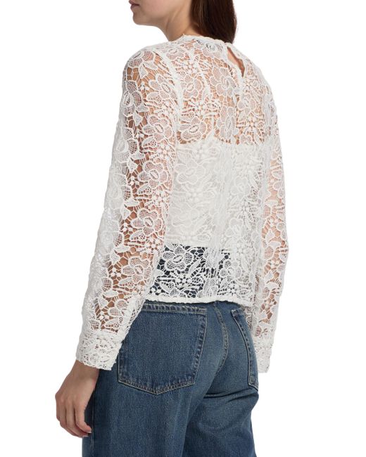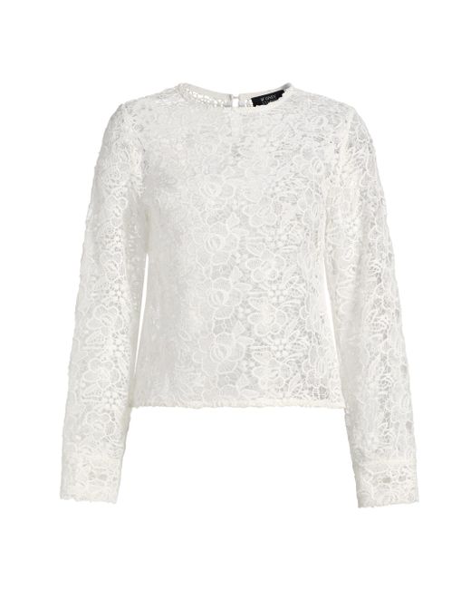 This top from If Only Studios is crafted of lace. Jewel neck Long sleeves Back button keyhole closure 100% polyester Dry clean Imported SIZE & FIT About 22.75" from shoulder to hem Model measurements: 5'10" tall Model is wearing a US size Small. Contemporary Sportswear - Private Label Contempora > If Only Studio > Saks Fifth Avenue. If Only Studio. Color: Ecru. Size: XS.