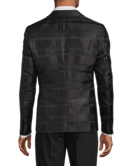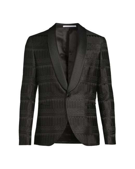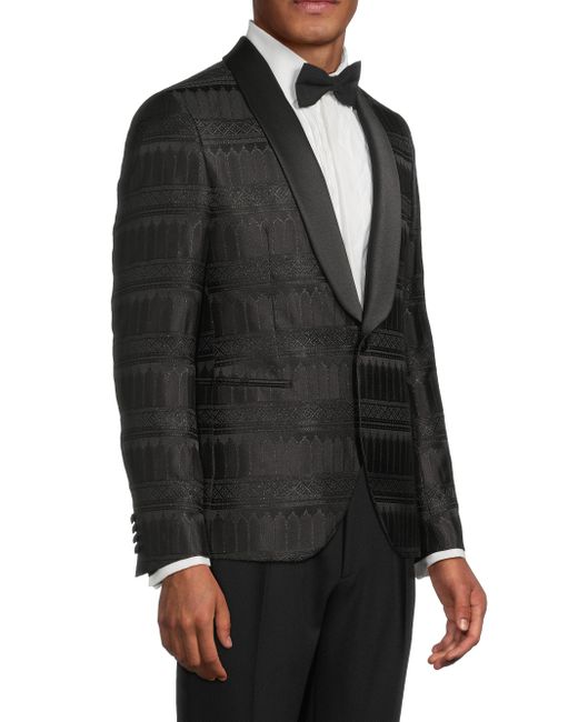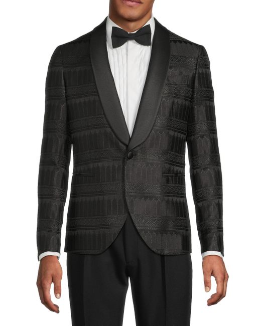 Crafted of a silk blend, this Pal Zileri dinner jacket is cut in a single-breasted silhouette and features contrasting satin trim. Notched lapels Long sleeves, button cuffs Chest and side welt pocket One-button closure 66% silk/34% polyester Dry clean Imported SIZE & FIT About 28.75" from shoulder to hem Model measurements: 6'2" tall, 40" chest, 31" waist Model is wearing a US size 40R. Men Luxury Coll - Formal Wear > Pal Zileri > Saks Fifth Avenue. Pal Zileri. Color: Black. Size: 40.