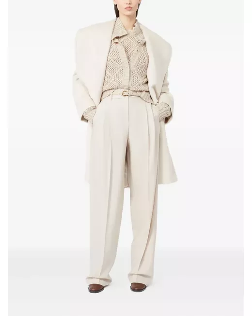 beige virgin wool-blend pleated front belt loops matching belt slash pockets