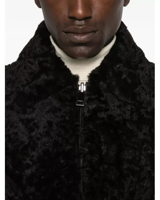 black lamb fur zip fastening ribbed hem and cuffs long sleeves