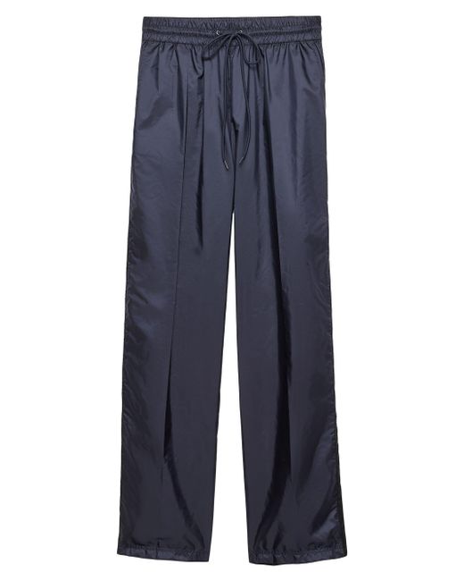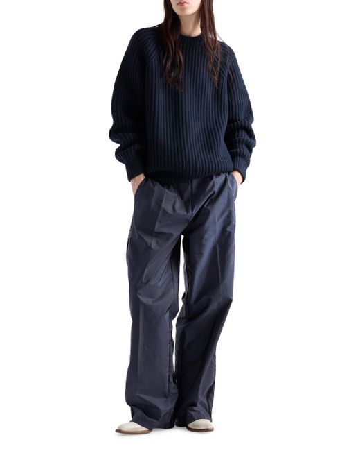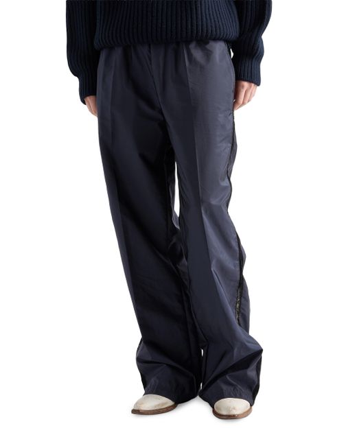 Wide-leg fit Unlined garment Elasticized waist with drawstring Angled slash pockets Patch pocket on the back Stitched hem Enameled metal triangle logo Intarsia lace trim down the sides Pressed garment Imported 100% Recycled Polyamide. Lsd Rtw - Prada Rtw > Prada > Saks Fifth Avenue. Prada. Color: Blue. Size: 2.