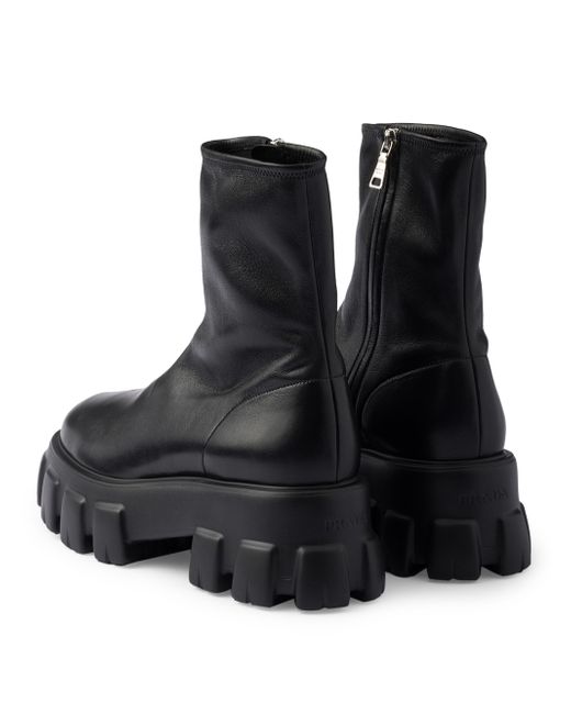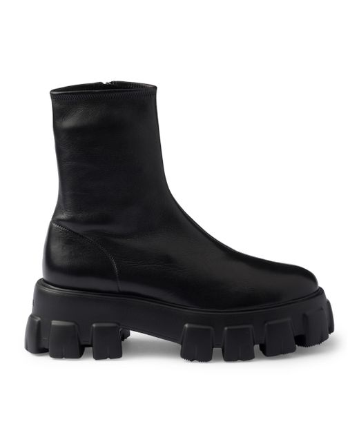 Leather lining Zipper closure Boot leg: 19 cm / 7.4'' Monoblock rubber sole 55 mm / 2.1'' Lug tread Removable leather-covered insole Imported 100% Lamb Leather. Lsd Rtw - Prada Rtw > Prada > Saks Fifth Avenue. Prada. Color: Black. Size: 7.