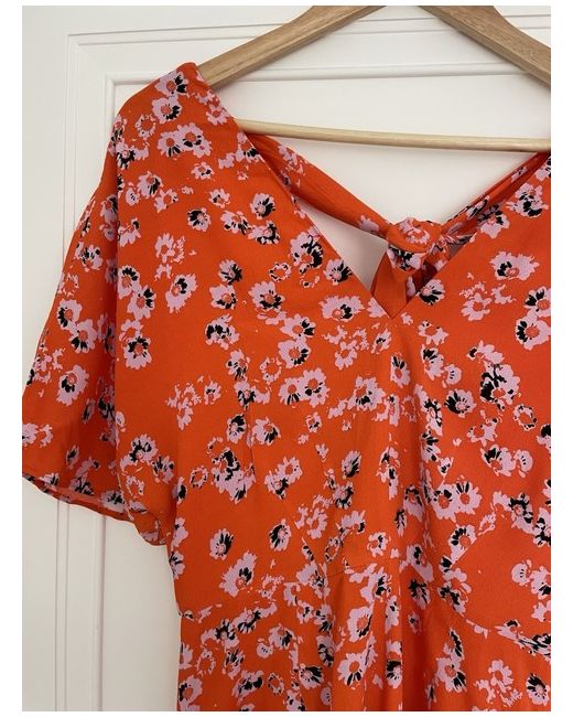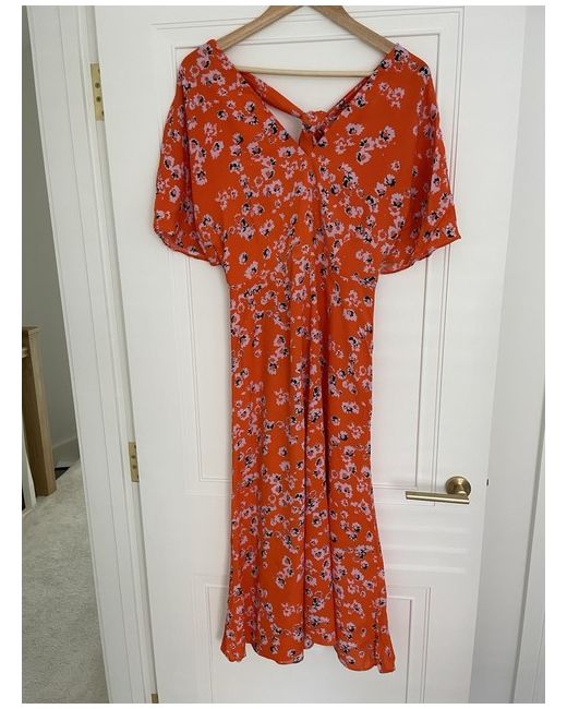 Women's Orange Mid Length Patterned Dress 10