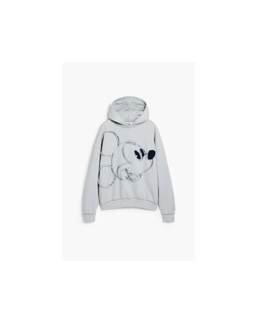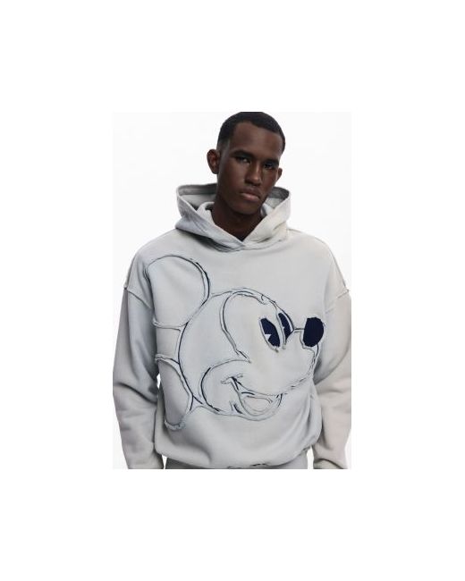 Long-sleeve sweatshirt with Mickey Mouse design, patchwork-style denim details on both sides, and a hood.
