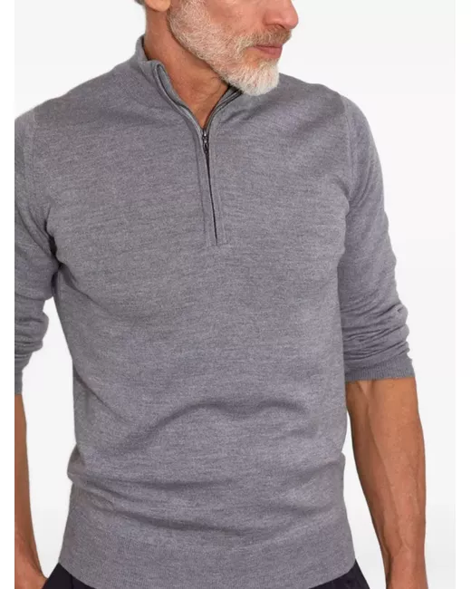 grey merino wool half zip fastening high neck long sleeves ribbed cuffs