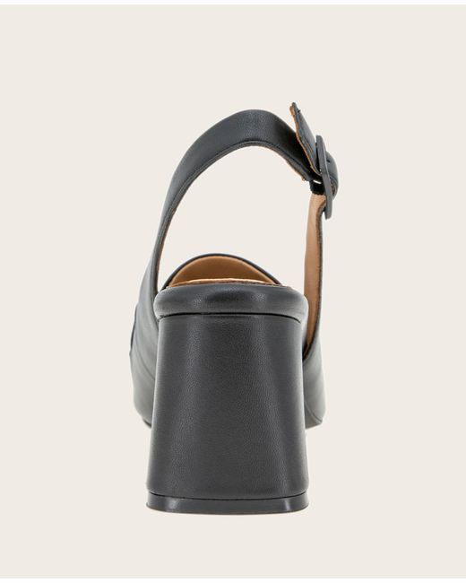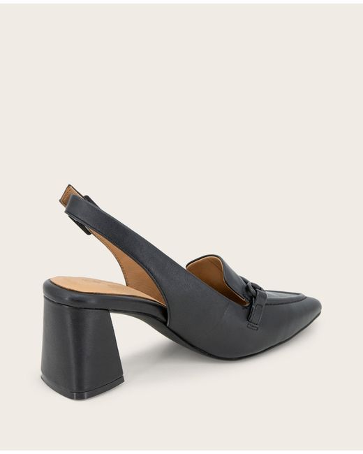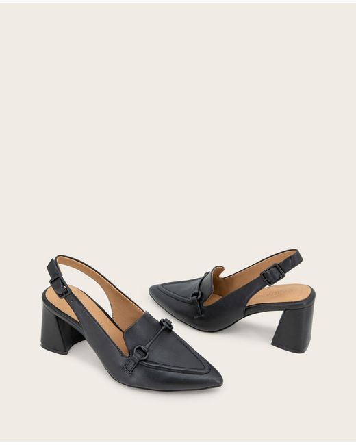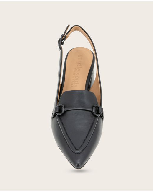 WHAT’S IN IT FOR YOU? Pointed-toe with a slender profile Ankle buckle closure Signature Gentle Souls comfort technology Breathable leather lining naturally wicks moisture and controls temperature Cloudlike PORON cushioning and patented arch support from natural materials Multi-layered comfort cushioning system through footbed Boosted stacked heel with rubber outsole for grip and traction 2.6 inch heel 100% leather Wipe clean Imported | Gentle Souls - Dawson Bit Leather Slingback in BLACK LEATHER, Size: 5 by Kenneth Cole