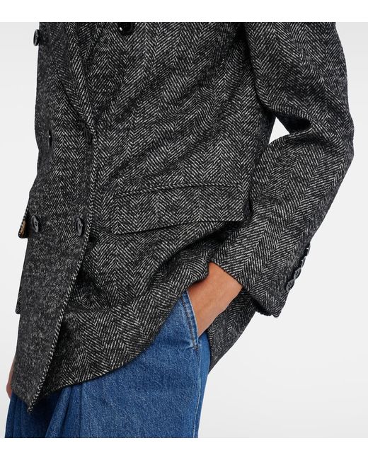 Material: 56% wool, 25% polyester, 19% acrylic. Care instructions: dry clean. Made in Italy. Designer color name: Fantasia. Item color: black, white. Lining: 97% polyester, 3% elastane. Peak lapel. Cuff: four buttons. Pockets: flap pockets, breast pocket. Closure: double-breasted (six buttons). Vent: single.