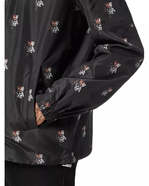 black all-over Teddy Bear print zip fastening adjustable hood side pockets elasticated cuffs
