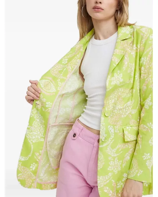 lime green mosaic print peak lapels button fastening long sleeves flap pockets