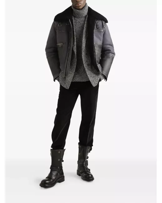 grey herringbone pattern double-breasted closure peak lapels long sleeves straight hem