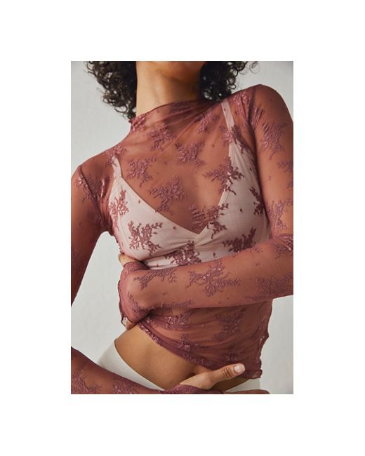 Perfect for layering, this sultry mesh long-sleeve is featured in a sheer design with floral embroidery, a high-neckline and thumbhole details. * Relaxed fit * Fluttery hemline * Unlined and sheer Lady Lux Layering Top by Intimately at Free People in Oh Bloom, Size: XS