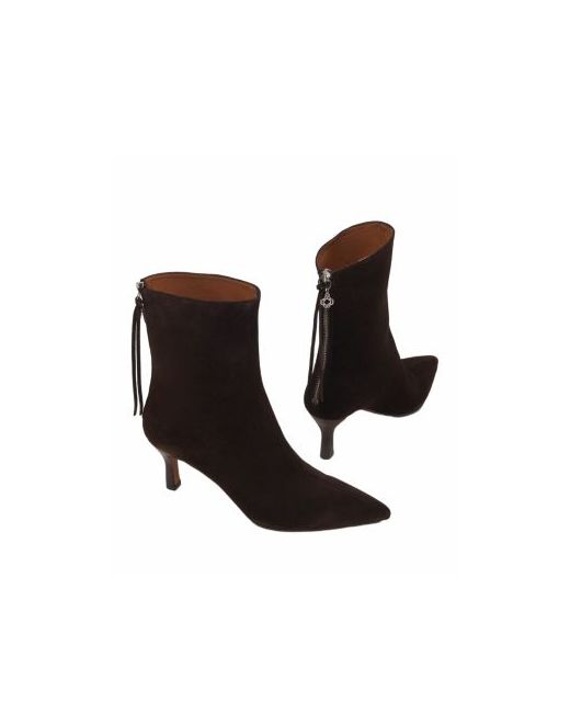 These suede ankle boots by Maje create a sharp silhouette with their pointed toe and covered heel. The zip adorned with laces and the engraved Clover tassel give this model character. A statement piece, designed to enhance both fitted jeans and a flowing dress.