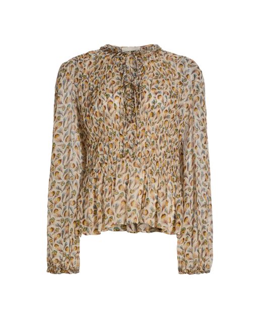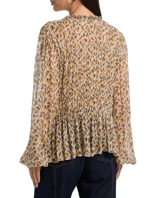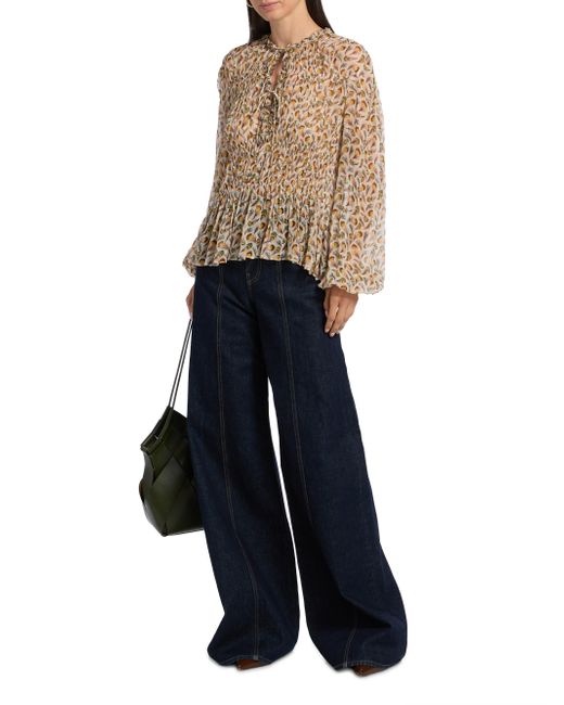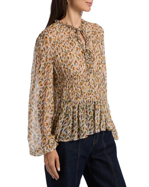 This Robbie long-sleeve blouse from Ulla Johnson, crafted of luxurious silk, is designed with a feather print, a round neck, and front ties. Round neck Long puff sleeves, elasticized cuffs Front tie closure 100% silk Dry clean Imported SIZE & FIT About 24.5" from shoulder to hem Model measurements: 5'10" tall Model is wearing a US size 4 ABOUT THE BRAND Manhattan-based designer Ulla Johnson credits her archaeologist parents as inspiration for her namesake ready-to-wear label, founded in 1998. Natural fibers, easy fits and meticulous finishes are seen in each collection, which incorporate sweeping silhouettes, and printing and dyeing techniques from around the world. Contemporary Sportswear - Contemporary Lifestyle > Ulla Johnson > Saks Fifth Avenue. Ulla Johnson. Color: Swan. Size: 0.