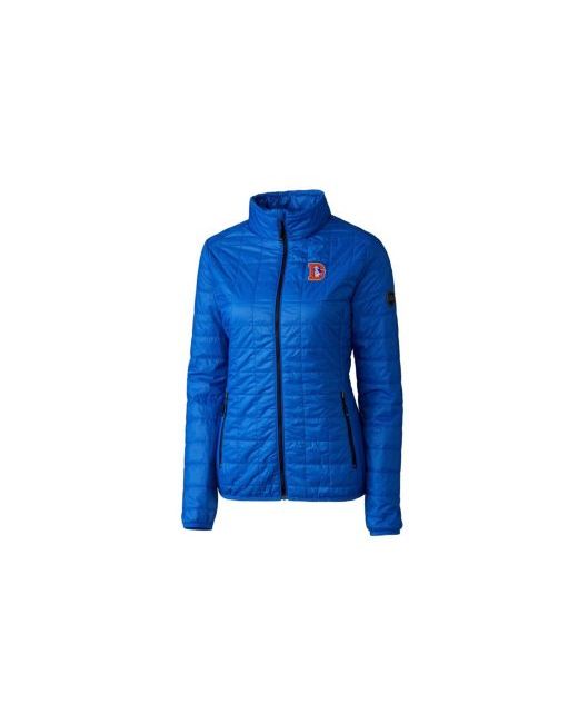 Celebrate your Denver Broncos pride with the Women's Cutter & Buck Throwback Logo Rainier PrimaLoft Eco Full-Zip Puffer Jacket. This heavyweight jacket is perfect for cold weather, with a wind and water-resistant nylon shell and a concealed stowaway hood that packs inside the collar. The embroidered Denver Broncos graphics show your team spirit, and the full-zip closure and front side pockets keep you comfortable and secure. Whether you're braving the cold at Mile High Stadium or just want to show your Broncos pride, this jacket is a must-have for any true fan.