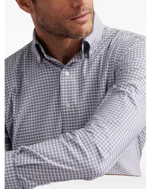 grey checked pattern button fastening long sleeves buttoned cuffs point collar