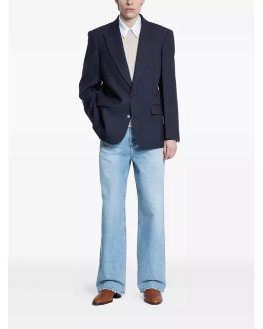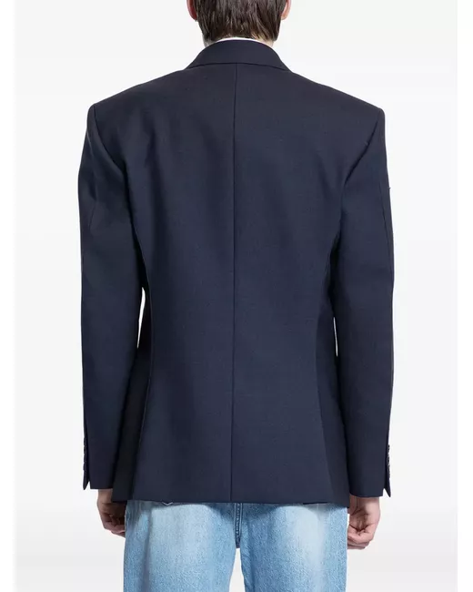 navy blue button fastening single breasted peak lapels
