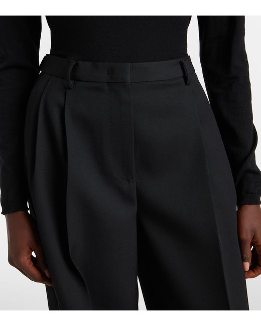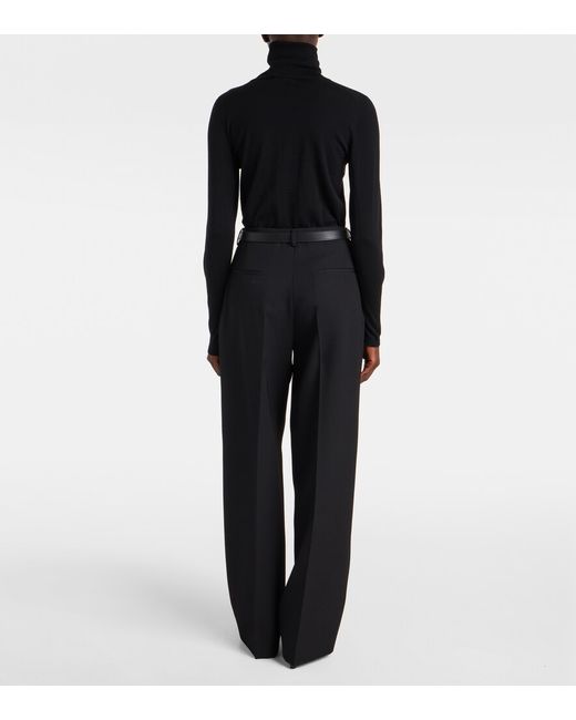 Material: 100% wool. Care instructions: dry clean. Made in Italy. Designer color name: Black. Item color: black. Pocket lining: 100% cotton. Contains non-textile parts of animal origin. Closure: zipper fly, button and hook fastenings. Pockets: side slit pockets, back pockets. Belt loops. Detachable belt. Wool.